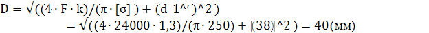 где: k – коэффициент, учитывающий скручивание тела гайки, k=1,3 ; [s] - допускаемое напряжение сжатия или растяжения ; [s]=250 МПа;