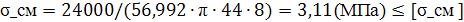 б) Проверка на смятие:
