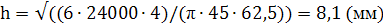 Принимаем z=4. Определим высоту гайки по следующей формуле: