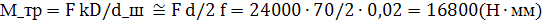 количество заходов резьбы (принимаем P – шаг резьбы; d2 – средний диаметр резьбы.
