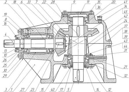 Контрольная работа: Технологические особенности сборки редуктораКонтрольная работа: Технологические особенности сборки редуктораВЯТСКИЙ ГОСУДАРСТВЕННЫЙ УНИВЕРСИТЕТ КОНТРОЛЬНАЯ РАБОТА № 1По дисциплине«Технология сборки изделий»Выполнил: Студент 6-го курса Солдатенко Р.В. Шифр: 05-ТМ-235 На рисунке 1 приведен эскиз изделия согласно [1]. Это сборочная единица – редуктор одноступенчатый конический с горизонтальным быстроходным и вертикальным тихоходным валами.