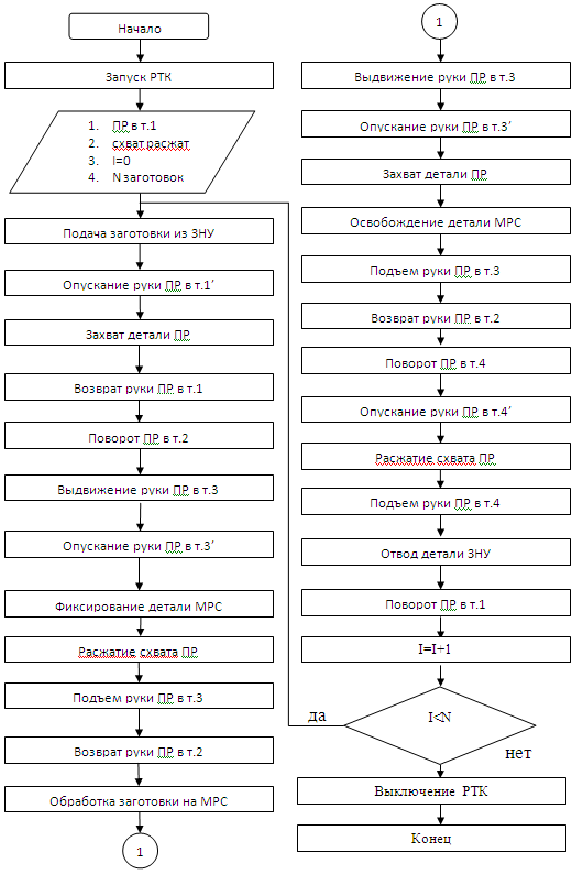 Рис. 9. Блок-схема работы РТК 7. Разработка циклограммы работы РТК