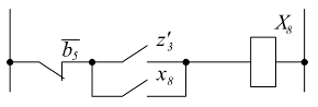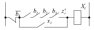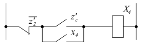 Из анализа весового состояния видно, что схему можно реализовать без дополнительных элементов. Из структурной теории релейных устройств известна следующая структурная формула для определения первоначальной структуры элемента Х: