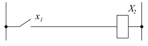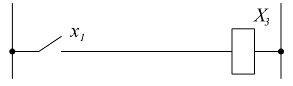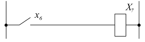 Рисунок 4.1 – Алгоритм управления Вывод: Алгоритм реализуем, так как суммарное весовое состояние равно нулю. Схем управления реализуема без дополнительных элементов, так как в тактах алгоритма включения нет повторяющихся весовых состояний. 5. Разработка структуры управления в автоматическом режиме работы оборудования Разработку начинаем с составления структурной формулы. Для этого воспользуемся таблицами частных включений исполнительных механизмов. В нее входят: само исполнительное устройство, контакты командного аппарата, включающего исполнительный механизм, и контакты аппаратов, срабатывающих и обеспечивающих выполнение всех условий, предъявляемых к данной технологической линии. Структурная схема исполнительного элемента Х1 Таблиц 5.1 – Таблица частных включений ИЭ Х1