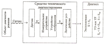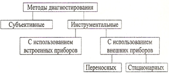 Рисунок 1- Структурная схема методов диагностирования двигателей Инструментальные методы диагностирования являются наиболее объективными методами, т.к. при диагностировании применяются измерительные приборы, позволяющие количественно измерять диагностические параметры, а по их значениям оценивать техническое состояние двигателя. Встроенными средствами диагностирования являются входящие в конструкцию автомобиля или трактора датчики, устройства измерения, микропроцессоры и устройства отображения диагностической информации (рис. 2).
