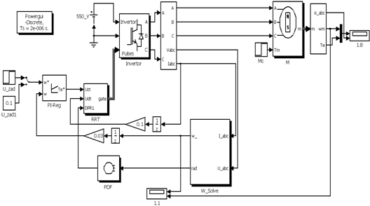 Структурная схема электропривода с бездатчиковым определением скорости приведена на рис. 8.1.