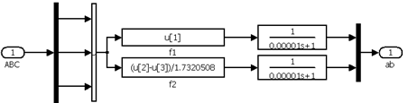 Структура преобразователя координат (ABC – ab), собранного по формулам (8.1) приведена на рис.8.3.
