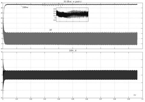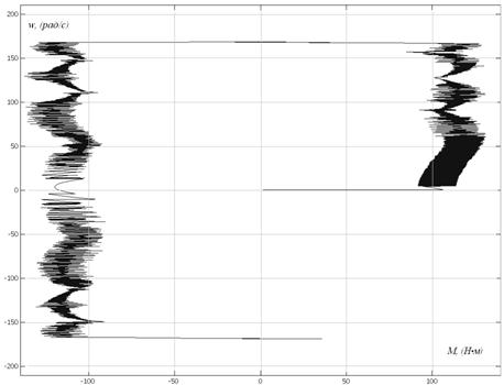 скорости двигателя видно, что момент двигателя не постоянен, и кроме пульсаций,