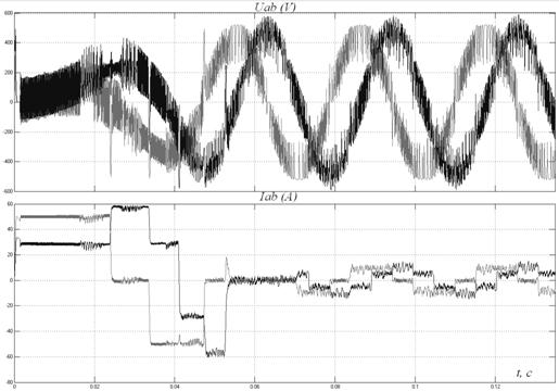 Рис. 6.9 Также для сравнения на рис. 6.9 приведены линейные напряжения статора двигателя. 7. Анализ динамических свойств виртуальной модели вентильного двигателяДля анализа динамических