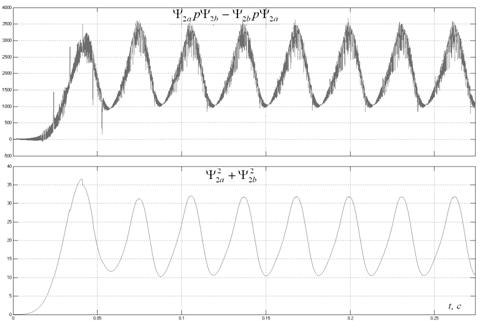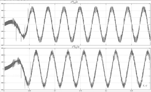 Рис. 8.4 Производные потокосцеплений статора двигателя в неподвижной системе координат приведены на рис. 8.5.