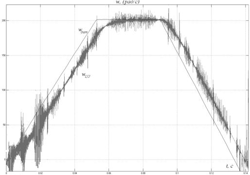 свойств виртуальной модели вентильного двигателя, кривые скорости