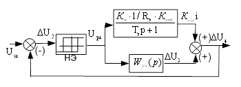 тока На регулятор скорости и связанные с ним узлы возлагаются дополнительные задачи: 1. Ограничение сигнала 2. Ограничение скорости изменения тока di/dt, 3. Формирование требуемой жесткости механических характеристик электропривода, 4. Прием сигналов задания скорости двигателя, 5. Обеспечение изменения ЭД с определенным ускорением и др. 4. Синтез контура токаДля обеспечения желаемых динамических характеристик привода примем в качестве регулирующих устройств в контуре тока релейные элементы на каждую фазу двигателя. Используя безынерционные свойства реле, можно настроить систему регулирования на предельное быстродействие, зависящее от параметров контура скорости. Наличие релейных элементов приводит в существенной нелинейности всей системы в целом. Если не принять соответствующих предосторожностей, то автоколебания, возникающие в релейной автоматической системе, приводят к столь значительному изменению выходной величины линейной части, что релейная система становится неработоспособной. Для уменьшения изменения выходной величины необходимо либо