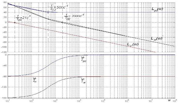 ЛАЧХ и ЛФЧХ полученные при синтезе системы, приведены на рис. 5.2.