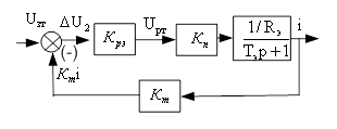 Выделим из структурной схемы электропривода с синхронной машиной, включенной по схеме вентильного двигателя, контур тока (рис. 4.1).