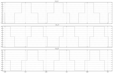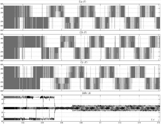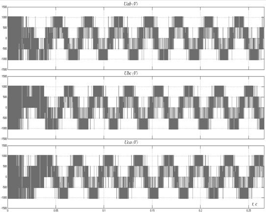 средняя частота переключений обычно находится в пределах На рис. 6.8 представлены фазные напряжения статора двигателя. Несинусоидальность выходного напряжения приводит к несинусоидальному характеру тока в статорных обмотках и пульсациям момента двигателя. Эти пульсации особенно сильно проявляются при пониженной частоте и небольшом моменте инерции механизма, который приводится в движение приводом. Тогда они вызывают неравномерность вращения, а иногда и возникновение шагового режима, когда двигатель вращается с остановками [14].