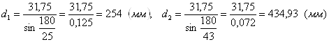 З умови забезпечення кута обхвату ведучої зірочки (більше 1200) знаходимо оптимальну міжосьову відстань