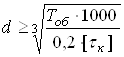 Орієнтовний розрахунок діаметра вала роблять на кручення за значно зниженими допустимими дотичними напруженнями: [τк] = 15...30 МПа – допустиме напруження на кручення для валів з вуглецевої сталі. Менші значення – для швидкохідних, більші – для тихохідних. Низькі значення допустимого дотичного напруження пояснюються тим, що не враховується згин вала, не беруть до уваги змінність у часi виникаючих напружень, не враховується концентрація напружень. Діаметр вала d