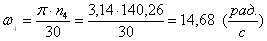 потужність Р (кВт), частоту обертання n (об./хв.), кутову швидкість Р1=Рдв. розр.= 5 кВт; Р2=Р1 · hм.=5 · 0,98=4,9 (кВт); Р3 =Р2 · h=4,9 · 0,97=4,753 (кВт); Р4=Р3 · hл.=4,753 · 0,93=4,42 (кВт). n1=nдв=965 об./хв.; n2=n1/uм=965/1=965 (об./хв.); n3=n2/uред.=965/4=241,25 (об./хв.); n4=n3/uл.=241,25/1,72=140,26 (об./хв.).