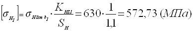обмеження коефіцієнта довговічності Обчислюємо допустимі контактні напруження Для шестірні – Для колеса – Для прямо- і