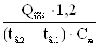 + 273 ) + DТ ] · e Температуру сжатого воздуха после теплообменника принимается в пределах (30 ÷ 40) ºС Температура t2 численно равна температуре сжатого воздуха tсж определенной ранее по выражению (3.3) для расчета межцеховых и внутрицеховых сетей промышленного предприятия при условии e = 1. Т.к. rв = 1,205 кг/м3; Св = 1005 Дж/кг, следовательно получим: Qв = 24,67 ·1,205 ·1005 · (59,8 – 40) = 591,54 Вт. Определяем дополнительный тепловой поток при охлаждении и частичной конденсации водяного пара: Qд = V·rв· [Cp· (x1·t1 - x2·t2)+(r0 - k·t2)(x1-x2)], (5.8) где Ср - средняя теплоемкость водяного пара при постоянном давлении, Дж/кг0С; r0 - теплота парообразования при 0 0С, Дж/кг; k - коэффициент, учитывающий снижение теплоты парообразования с повышением температуры конденсации; х1 и х2 - влагосодержание воздуха до и после теплообменника, кг/кг Для расчета воздухоохладителей компрессоров теплофизические величины принимают: Ср = 1880 Дж/кг0С; r0 = 2,5*106 Дж/кг; k = 2346. Определяем влагосодержание воздуха при входе в охладитель: х1 = где Rв - газовая постоянная воздуха, равная 287,14 кДж/кг·град; Rп - газовая постоянная водяных паров, равная 462 кДж/кг·град; P0 - давление воздуха во всасывающем патрубке ступени перед охладителем, Па; Р1нас - давление насыщенного водяного пара при температуре воздуха во всасывающем патрубке ступени перед охладителем, Па; Р1нас = 7374,9 Па, принимаем при температуре t2 = 40 0C; [5] j1 - относительная влажность воздуха при всасывании в ступень перед охладителем. (j1 = 0,8). Определяем давление после каждой ступени компрессора: P1 = Pатм · e = 101,325 · 1,39 = 140,84 кПа P2 = P1 · e = 140,84 · 1,39 = 195,76 кПа P3 = P2 · e = 195,76 · 1,39 = 272,1 кПа P4 = P3 · e = 272,1 · 1,39 = 378,219 кПа P5 = P4 · e = 378,219 · 1,39 = 525,72 кПа Pкон = P5 · e = 525,72 · 1,39 = 730,75 кПа х1 = Определяем влагосодержание воздуха при выходе из охладителя: х1 = где Р -давление воздуха в охладителе, Па; Р2нас - давление насыщенного водяного пара при температуре газа на выходе из охладителя, Па; Р2нас = 7374,9 Па, при температуре t2 = 40 0C; [5] j2 = 1 - относительная влажность на выходе из охладителя; х2 = Qд = 24,67·1,205·[1880·(0,007·59,8 - 0,0062·40) + 2,5·106 - 2346·40) + (0,007 - 0,0062)] = 66757,4 Вт. Количество тепла, выделяемого при охлаждении влажного воздуха, можно представить в следующем виде: Qохл = Qв + Qд,(5.11) где Qв - тепловой поток при охлаждении сухого воздуха, Вт; Qд - дополнительный тепловой поток при охлаждении и частичной конденсации водяного пара, Вт. Qохл = 591,54 + 66,757 = 658,297 Вт. Определяем поверхность теплообмена воздухоохладителя: F = где 0,5 - коэффициент, учитывающий улучшение коэффициента теплоотдачи за счет конденсации влаги; y1 - коэффициент на загрязнение поверхности охлаждения, принимается в пределах 1,05 ¸1,1; y2 - коэффициент использования поверхности охлаждения, равный 0,8 ¸ 0,9; eDt - поправка: для аппаратов с перекрестным и смешанным потоком рабочих жидкостей менее 1,0; для противотока равна 1,0; Dt - средний температурный напор, 0С; k - коэффициент теплопередачи, Вт/м2*град. Коэффициент теплопередачи k в теплообменниках со стальной поверхностью теплообмена для теплоносителей воздух - вода, варьируется в пределах 10 ¸ 40 Вт/м2·град. Средний температурный напор при противотоке: Dt = ,(5.13) где t1, t2 - температура воздуха до и после теплообменника соответственно, 0С; tв.1 - температура охлаждающего теплоносителя на входе в охладитель, принимается в пределах (1 ¸ 30)0С; tв.2 - температура охлаждающего теплоносителя на выходе из охладителя, 0С. Определяем температуру охлаждающей воды на выхо
