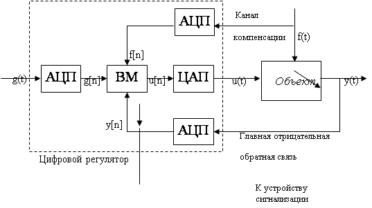 Окончательно управляющее воздействие цифрового регулятора с компенсацией возмущений получают суммированием регулирующего u1(t) и компенсирующего u2(t) воздействий: