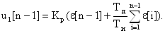 Более удобна для реализации на ЭВМ другая, так называемая скоростная форма этого алгоритма. Для её получения запишем значение u1 на предыдущем интервале дискретности: