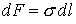 Коэффициент поверхностного натяжения поверхности равен свободной энергии единицы поверхности. Соответственно эти коэффициенты определяют силы поверхностного натяжения, действующие на единицу элемента длины границы раздела. Согласно этому определению сила dF, действующая на бесконечно малый элемент dl границы раздела двух сред равна