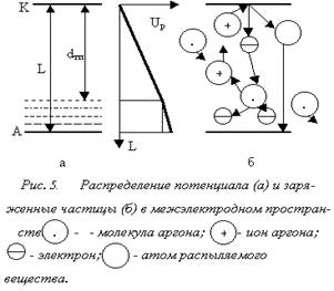 рис.5 представлена упрощённая структура разряда и распределение потенциала