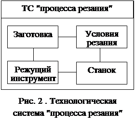 Подсистемы технологической системы пронизаны между собой причинно-следственными связями и влияют на функционирование друг друга. Подсистемы только относительно неделимые части. При отдельном их рассмотрении как систем в каждой из них можно выделить свои подсистемы как условно неделимые части. Заготовку можно характеризовать следующими условно неделимыми частями: породой, влажностью, плотностью, прочностью, упругостью, пластичностью, температурой, размерами и др. Режущий инструмент включает такие элементы как угол заострения, количество лезвий, остроту режущих кромок, физико-механические свойства материала зубьев, шероховатость поверхности лезвий, длину режущих кромок и др. Станок включает следующие элементы: механизм главного движения с вращательным или возвратно-поступательным движением, механизм подачи, механизм базирования, количество рабочих движений и последовательность их выполнения, толщину и ширину срезаемого слоя, угол резания, задний угол, угол встречи (наклона, скоса) режущей кромки лезвия с волокнами древесины, скорость главного движения и движения подачи, силы резания и трения, мощность приводов и др. Условия резания представляют собой совокупность условий, относящихся к заготовке, режущему инструменту и станку, необходимых и достаточных для осуществления требуемого процесса резания. Если условия резания изменить, то и остальные подсистемы (заготовка, инструмент, станок) следует изменить так, чтобы они обеспечили реализацию процесса резания. Если изменить параметры заготовки, например древесина ее будет мерзлая, в которой свободная влага находится в твердой фазе, то другие части системы тоже должны быть изменены. Режущий инструмент, станок и условия резания должны обеспечить выполнение процесса резания. Таким образом, изменение любой подсистемы отразится на состоянии других подсистем. При синтезе подсистемы объединяются в единое целое, где разрозненные факторы взаимодействуют совместно. Совместное взаимодействие факторов, их причинно-следственные связи создают общий положительный эффект системы, превышающий сумму положительных эффектов, создаваемых отдельными факторами. Библиографический список1. Панченко К.П. Русские ученые – основоположники науки о резании металлов. Жизнь, деятельность и избранные труды И.А. Тиме, К.А. Зворыкина, Я.Г. Усачева, А.Н. Челюскина. – М.: Машгиз, 1952.– 320 с. 2. Брикс А.А. Резание металлов, 1896. 3. Дешевой М.А. Механическая технология дерева.– Л.: Гостехиздат, 1934. – Т. 1. 4. Воскресенский С.А. О разграничении силы среза и давления на стружку: Сб. науч.-исслед. работ. – Архангельск, ЦНИИМОД, 1940. 5. Воскресенский С.А. Резание древесины. – М.: Гослесбумиздат, 1955. 6. Бершадский А.Л. Основные вопросы наивыгоднейшего продольного пиления древесины: Диссертация. – Минск, 1951. 7. Бершадский А.Л. Резание древесины. – М.: Гослесбумиздат, 1956. 8. Ивановский Е.Г. Книга о резании древесины // Деревообрабатывающая пром-сть. – 1956. – №5. – С. 28. 9. Кивимаа Е. Усилие резания в деревообработке. Hols aks Roh-und Werkstoff. – 1952. – III. – №3. 10. Бершадский А.Л. Определение удельной работы резания древесины // Механическая обработка древесины. – 1940. – №3. 11. Бухтияров В.П. О силах отжима при продольном фрезеровании //Лесной журнал. – 1959. – №3. 12. Комаров Г.А. Исследование поперечного фрезерования древесины: Диссертация. – М.: МЛТИ, 1963.