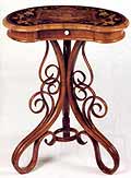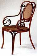 Вот уже некоторое время Тонет носился с мыслью о том, чтобы покинуть Вену. В городе не было ни сырья, необходимого для производства, ни рабочих, требующихся для растущих потребностей фирмы. Весной 1856 года Тонет отправился в Коричан/Моравия для организации первой фабрики. Здесь было достаточно рабочих, познавших прединдустриальные процессы производства на фабриках по производству фарфора и стекла, которые хотя и не были знакомы с произ-водством мебели, но имели больше желание работать. В период с 1856-58 гг. постепенно закрывается венская мастерская на мельнице Моллард. «Братья Тонет» переехали со всем своим мебельным магазином в Леопольдштадт. В доме было достаточно места для жилых помещений и оборудования нового репрезентативного торгового филиала. К тому периоду времени изготовлением мебели из гнутой клееной многослойной древесины успешно занимался Йозеф Нейгер. Благополучный исход обжалования привилегии 1852 года подстегнул Тонета 10 июля 1856 года подать ходатайство с целью получения привилегии на «изготовление кресел и ножек столов из гнутой древесины, предварительно распаренной водяным паром или вымочен-ной в кипящей жидкости». Тем самым Тонет на два шага продвинулся в будущее: с одной стороны, был защищен не только способ производства, но и прежде всего его применение в мебельной промышленности. С другой стороны, он заявил о том, что в его распоряжении имеются технические предпосылки для гнутья цельной древесины. Общий объем продукции за 1857 год составил уже 10.000 предметов мебели из гнутой древесины. В конце 50-х гг. прошлого века Тонет запустил в серийное производство 14-ю по счету модель стула, самую простую и безупречную. Стул # 14 стал наиболее популярным, известным и массовым. Именно от него и пошло название "венский стул" и представление о венской мебели вообще. Эта мебель собиралась с помощью винтиков без использования сильного клея. Ящик, в который упаковывались три дюжины демонтированных стульев, занимал объем 1 куб. м (именно в таком виде они доставлялись и в российские магазины). Число деталей стула # 14 было сведено к минимуму - к шести, конструкция доведена до совершенства. Прочность венского стула была однажды продемонстрирована эффектным рекламным трюком: он был сброшен с Эйфелевой башни и не разбился. Ни один предмет традиционной мебели не выдержал бы такого испытания. Со дня изобретения венского стула его производство не прекращалось (сейчас эта модель производится под # 214). Помимо 22 моделей стульев были созданы кресла-качалки, столы, кровати, колыбели, туалетные столики и целые мебельные гарнитуры, садовая, детская и игрушечная мебель, сани, лыжи, теннисные ракетки и прочее. И даже специальные стулья с высокими сиденьями для крупье в казино. В начале XX века каталоги фирмы Тонет включали около 1200 моделей, фабрики производили почти 2 млн. изделий в год. Производство серийных моделей осуществляется при самом незначительном расходе материала и незначительных затратах на монтаж. Основные качества этой модели харак-терны для оптимального индустриального производства мебели из гнутой древесины. В 1859 году «Братья Тонет» отдали напечатать первую рекламную информацию; в ней были представлены 26 различных серийных моделей из гнутой древесины. Наряду с публикацией объявлений и участием в выставках такая информация с