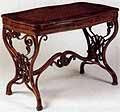 В Придерживаясь международных тенденций в этой области, венская художественная кустарная промышленность отошла от стиля бидермейера и обратилась к раннему историзму. В соответствии с духом времени Десвайгнес остановился на богатом орнаментами языке форм так называемого «второго рококо». Десвайгнес еще раньше обратил свое внимание на способ гнутья древесины Тонета и предложил ему и его сыновьям участвовать в оборудовании дворца на правах независимого партнера Карла Лейстлера. Результатом этого партнерства было изготовление паркета с роскошным декором по новой технологии гнутья. В это же время Михаэль Тонет спроектировал пять моделей стула, изготовленных оптимальным способом склеивания отдельных слоев. На этот раз он использовал не листы фанеры, а деревянные прутья, соединенные клеем в пучки так искусно, что кажущаяся монолитность материала позволяла достигать любые трехмерные закругления. Совместная работа над интерьером дворца длилась вплоть до 1847 года. Всё это время семья Тонета жила в доме Карла Лейстлера в Вене-Гум-пендорфе. После завершения работ по внутренней отделке помещений дворца в 1849 году Десвайгнес вернулся в Англию, а Лейстлер получил новый заказ - внутренняя отделка и оборудование владений Лихтенштейнеров в Айсгрубе. Он отверг предложение М.Тонета по организации совместного предприятия. На это Тонет расторгнул еще имевший силу договор о сотрудничестве. В мае 1849 года он оборудовал свою собственную мастерскую в Вене - Гумпендорфе, на улице Гауптштрассе 396. Здесь была спроектирована модель стула N 1 - продолжение проектов лихтенштейнских стульев. Спинка этого стула состояла из одной единственной петли. Эта модель была использована как так называемый «Шварценбергский стул» для оборудования Шварценбергского дворца, который был сооружен в 1700 году. Другой заказ был получен из кафе Даум, расположенного в центре Вены. Так называемый «стул кафе Даум» ознаменовал переход от розничных заказов к оптовым сделкам. 400 стульев этого типа были заказаны будапештской гостиницей «К королеве Англии». Всемирная выставка в Лондоне 1851