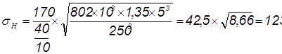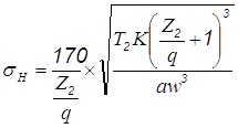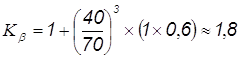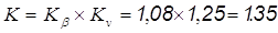 По таблице (4.7) выбираем 7-ю степень точности передачи и находим значение коэффициента динамичности Kv = 1,1 Коэффициент неравномерности распределения нагрузки (формула 4.26)