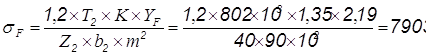 Коэффициент формы зуба (по таблице 4.5) YF = 2,19 Напряжение
