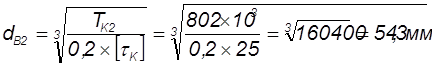 Принимаем ближайшее большее значение из стандартного ряда (стр. 162) Принимаем dВ2 = 55мм. Диаметр вала под подшипниками dП2 = 60мм Под зубчатым колесом dK2 = 70