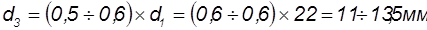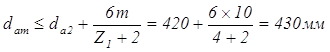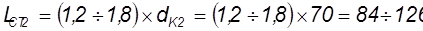 По ГОСТ принимаем dВ1 =40мм Диаметры подшипниковых шеек dП1 = 50мм Параметры нарезной части: dF1 = 76мм d1 = 100мм dа1 =120мм Для выхода режущего инструмента при нарезании витков рекомендуется участки вала, прилегающие к нарезке протачивать до диаметра меньше dF1 Длинна нарезной части b1 = 201мм Расстояние между опорами червяка l1 = dam2 = 465мм Ведомый вал. Диаметр выходного конца