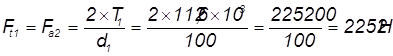 Силы в зацеплении Окружная сила на червячном колесе , равная осевой силе на червяке.