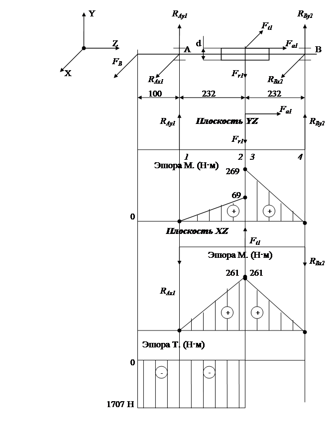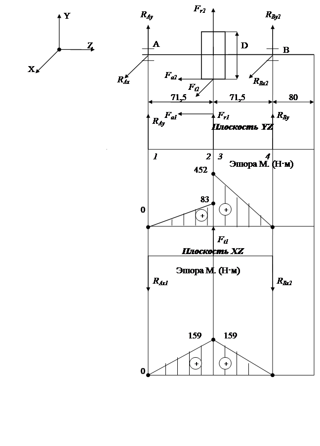 M4 = 0 Рисунок 2 – расчетная схема ведущего вала