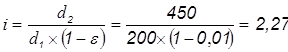 Из стандартного ряда шкивов выбираем шкив с диаметром 450 мм. Передаточное отношение