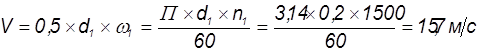 Напряжение от центробежной силы мПа ρ= 1100 – плотность ремня