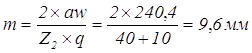 Принимаем по ГОСТ2144-76 (таблица 4.1 и 4.2) стандартные значꐼΔия m = 10 q = 10 а также Z2 = 40 Z1 = 4