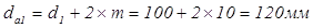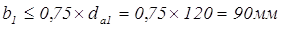 Червяк выполняется за одно целое с валом, его размеры определены выше. d1 = 100мм da1 = 120мм b1 =170мм Колесо кованое d2 = 400мм dа2 = 420мм b2 = 80,4мм Диаметр