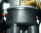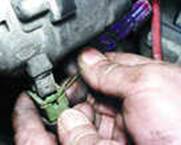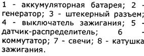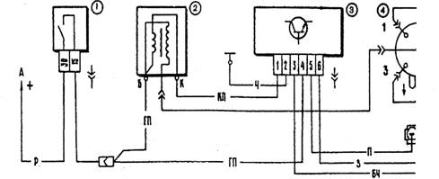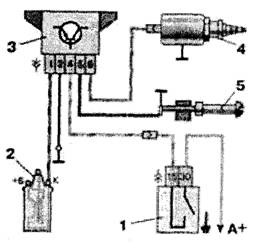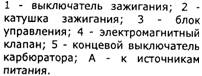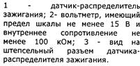 Свечи зажигания - типа А17ДВР, или А17ДВРМ, или А17ДВРМ1, или их аналоги (с помехоподавительным сопротивлением 4-10 кОм). Высоковольтные провода - с распределенным сопротивлением 2550±27 (следует прикасаться к высоковольтным проводам на работающем двигателе может привести к электротравме. Запрещается также запускать двигатель позволять ему работать с разорванной, высоковольтной цепью (снятыми или крышкой датчика-прерывателя) - это может привести к прогару и выходу из строя электронных компонентов системы зажигания. Как и возможна кратковременная проверка системы зажигания "на искру", контакт проверяемого высоковольтного провода должен быть надежно на расстоянии 5-10 мм от "массы" автомобиля. Нельзя удерживать провода или инструментом (даже с изолированными ручками). Блок управления ЭПХХ электромагнитный клапан при у частоты вращения коленчатого вал; мин-1 и включает при снижении до 19 если концевой выключатель катушки замкнут на массу (педаль "газа" отпущена нажатой педали "газа" (работающем выключателе) клапан включен независимо от частоты вращения коленчатого вала на блок управления подается то включенном зажигании, поэтому выключении зажигания одновременно отключается и клапан (независимо от положения концевого выключателя - карбюратора). Для проверки работы блока управления подключаем вольтметр, как показано на рисунке (срабатывание клапана можно определить и по его щелчку при зажигании, без вольтметра). Отпускаем провод от концевого выключателя катушки и замыкаем его на "массу".