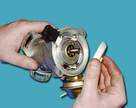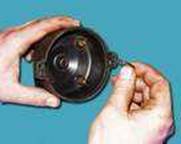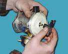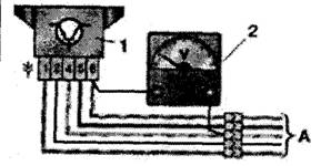 Датчик-распределитель выполняет основные функции: во-первых, задача искрообразования в зависимости от его установки, числа оборотов корпуса вала и нагрузки на двигатель, а также распределяет импульсы высокого напряжения ("искру") по цилиндрам в соответствии с порядком их работы. Для этого служит (бегунок), надетый на валик распределителя. Проверить работоспособность дaтчика можно, собрав схему, показанную на рисунке. Медленно вращая валик распределителя зажигания, следите за показаниями вольтметра. Напряжение может резко меняться от минимального до максимального. Неисправный дат ремонту не подлежит (за исключением обрыва проводов между самим валиком и колодкой на корпусе датчика-распределителя). Грубо оценить исправность вакуумного регулятора можно непосредственно в автомобиле, На заведенном двигателе отсоединяем от штуцера вакуумный шланг, ведущий к регулятору. Если теперь создать в шланге давление (можно ртом), обороты мотора должны возрасти, а при снятии разрежен снизиться. Разрежение должно сохраняться, по крайней мере, несколько секунд если пережать шланг. Визуально в работоспособности можно убедиться, частично разобрав, датчик-распределитель и разрежение к впускному штуцеру регулятора. При этом пластина с датчиком должна поворачиваться на угол 7±1°, а при снятии разрежения - без возвращаться обратно.