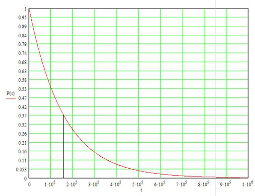 8) Определим вероятность безотказной работы от времени наработки до первого отказа.