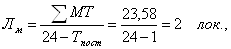 де 24 – кількість годин на добу. Кількість маневрових локомотивів Лм , локомотивів, визначається за формулою