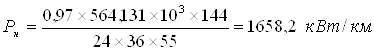 где rэк - сопротивление 1 км проводов контактной сети фидерной зоны, Ом/км; U - среднее расчетное напряжение в контактной сети, кВ. При переменном токе расчетное напряжение в контактной сети заменяется расчетным значением выпрямленного напряжения, приведенного к стороне высшего напряжения трансформатора электровоза: U = Ud = Uн* 0,9 = 25000 * 0,9 = 22500В. Суммарное время занятия фидерной зоны всем расчетным числом поездов за расчетный период (24 часа) с учетом графиковых стоянок внутри фидерной зоны.