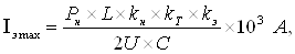 Определяем максимальный эффективный ток фидера: