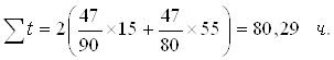 где СI = 8, СII = 1 - при схеме двухстороннего питания; ZITC- сопротивление двухпутного участка. Сопротивление тяговой сети переменного тока, при контактной подвеске ПБСМ – 95 + МФ – 100+А-185 и Р – 65 находим по таблице 14: ZITC = 0,124 Ом/км, U = 22500 В. Суммарное время занятий фидерной зоны максимальным расчетным числом поездов N о за сутки: