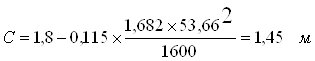 Окончательно принимаем длину пролета 53 м. Определяем длину пролета для кривой R2 = 1100 м согласно (27):