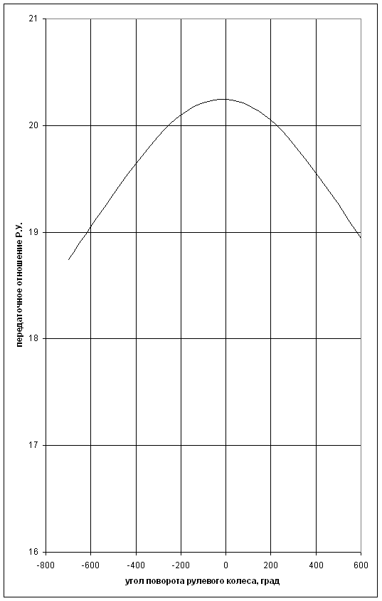 Передаточное число рулевого привода не является величиной постоянной и уменьшается с увеличением угла поворота руля, что неблагоприятно сказывается на усилии на рулевом колесе при парковании. Зависимость кинематического передаточного отношения проектируемого рулевого управления приведена на рис.6